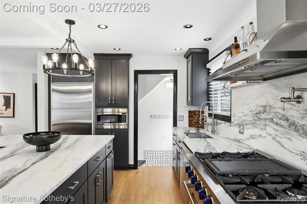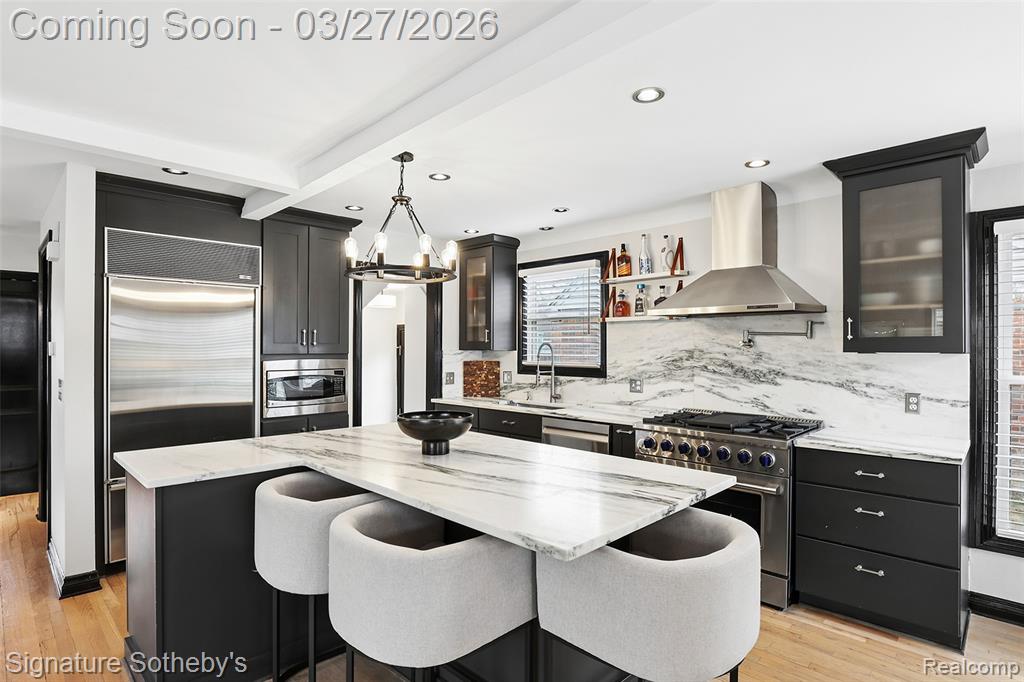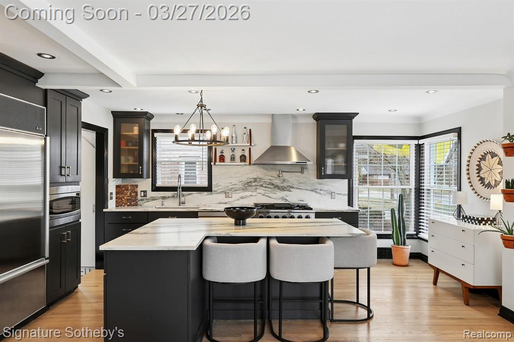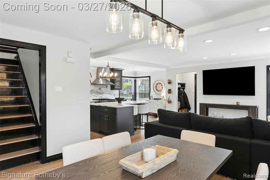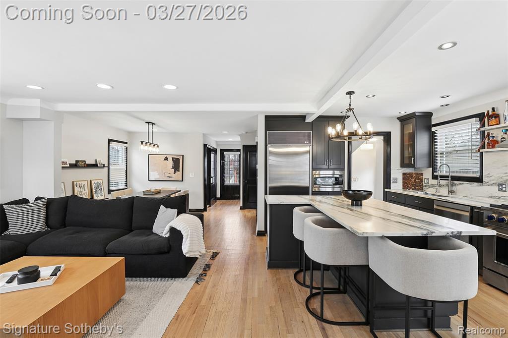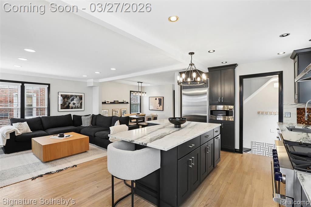 Completely renovated in 2025, this 1,537 sq ft home offers 3 bedrooms and 2 full bathrooms with a thoughtfully designed open floor plan. Clean architectural lines and a cohesive material palette create a modern, functional living environment. The kitchen is anchored by a stone island, complemented by a full-height stone backsplash and dark-toned cabinetry that adds contrast and depth. A Sub-Zero refrigerator is paired with a new range and dishwasher, while the island provides generous seating and prep space. The kitchen flows directly into the main living and dining areas, creating a natural, connected layout enhanced by hardwood flooring and updated lighting throughout. Upstairs, a renovated loft has been converted into two well-proportioned bedrooms, maximizing flexibility and usable space. Both of the bathrooms in the home have been fully updated with refined, contemporary finishes. The newly finished basement has been fully waterproofed, offering additional space for recreation, workspace, or fitness. Additional improvements include select window replacements and new blinds throughout. Located within walking distance to Pierce Elementary, nearby parks, and Birmingham Country Club, this home offers a well-balanced combination of location, design, and thoughtful updates. |